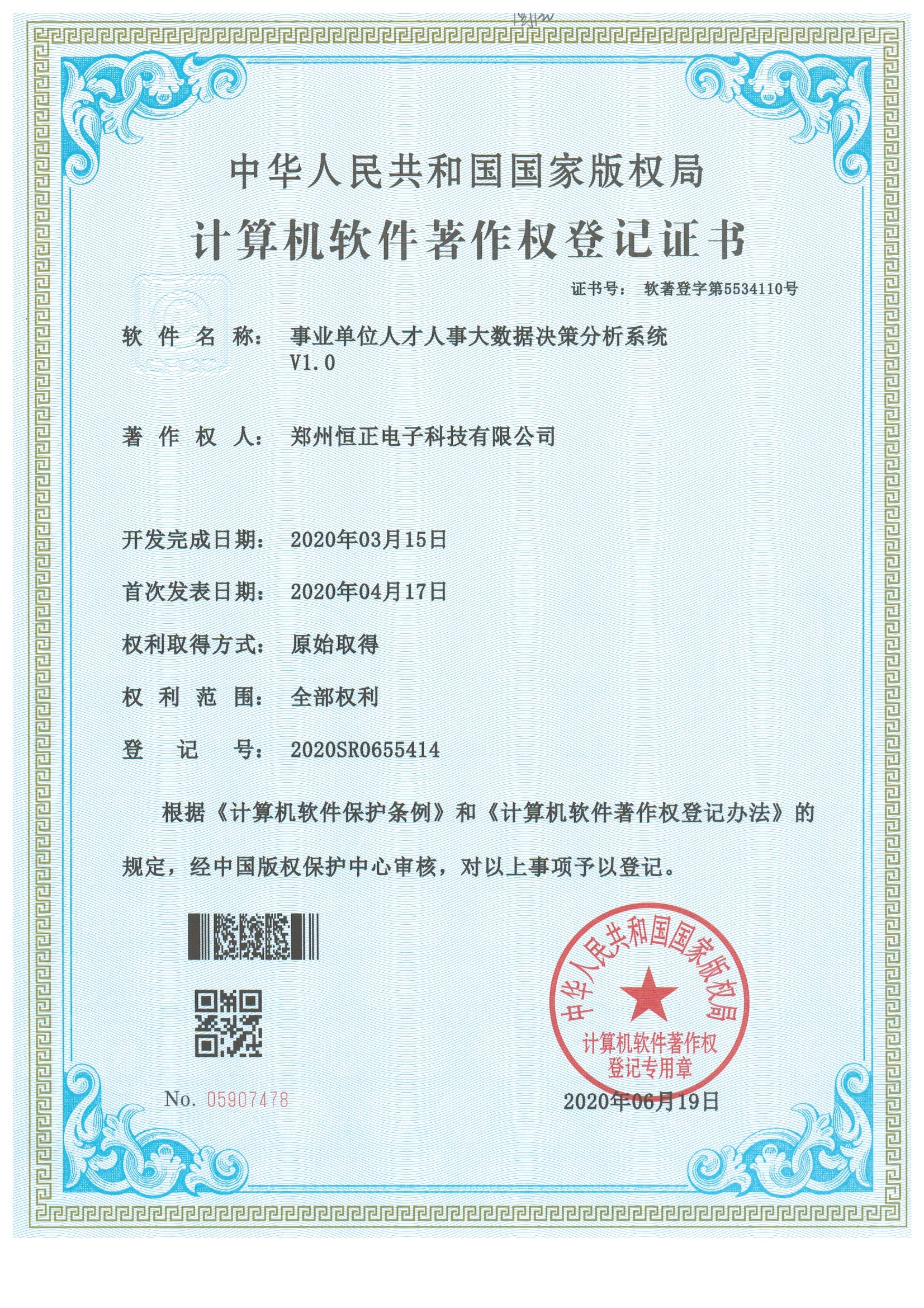 恒正科技自有辦公及開發場地700余平米,自建有高標準數據中心機房,具有完善的硬件網絡條件和開發測試環境,開發生產嚴格遵循軟件工程的工作流程,從項目規劃、總體設計、開發方法、編程風險、系統集成、系統測試到成本管理、質量管理、安全管理、驗收管理、服務管理等實現全過程和全員目標管理。公司擁有從中科院引進的經鄭州市政府認定的科技創新領軍團隊1個,目前擁有自主知識產權及發明專利70余項。公司主營業務線已實現系列化開發、產品化推廣。公司所提供的軟件產品和服務具有起點高、適用性強、集成度高、創新性強等特點,具有良好的經濟效益和社會效益。