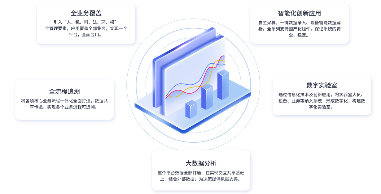 產(chǎn)品目前應(yīng)用于國(guó)家動(dòng)物疫病預(yù)防控制中心、河南、新疆等省份近200個(gè)生物檢測(cè)實(shí)驗(yàn)室,公司在2020年被河南省認(rèn)定為河南省動(dòng)物疫病預(yù)防控制大數(shù)據(jù)工程研究中心,擁有覆蓋農(nóng)業(yè)、畜牧、質(zhì)檢、生態(tài)環(huán)境、市場(chǎng)監(jiān)督等完整的檢測(cè)類管理產(chǎn)品體系和提供整體解決方案。