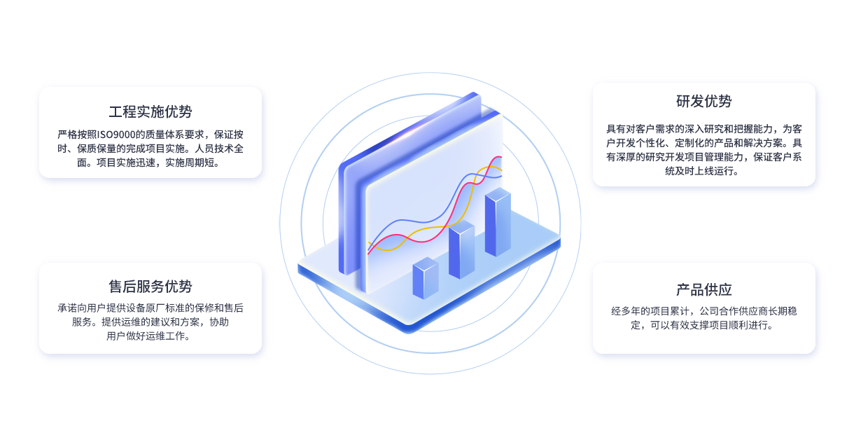 集成服務(wù):主要服務(wù)范圍包括綜合布線、網(wǎng)絡(luò)安全、數(shù)據(jù)安全、可視化智能管理、機房智能化建設(shè)、安防監(jiān)控、設(shè)備安裝調(diào)試、頁面定制開發(fā)和應(yīng)用支持。